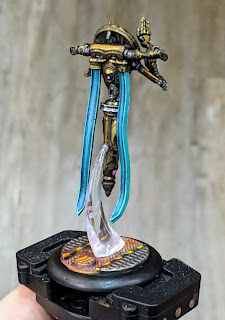 For her Crucible Guard armor, I used the same oxidized copper looking teal that I use for my robes, and the same brass as I normally use on my armor. The effect sort of makes it look like an inverted scheme and it fits really nicely with the rest of the army.